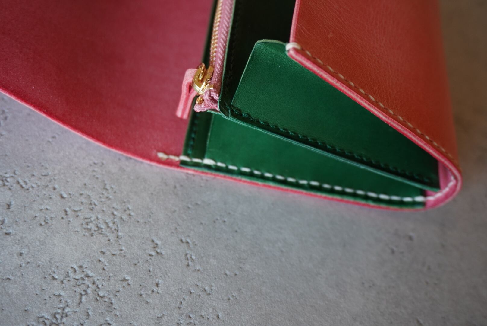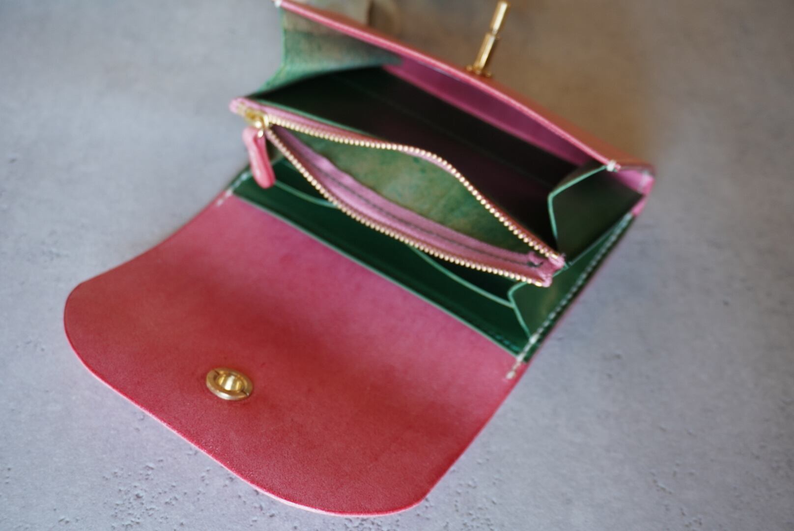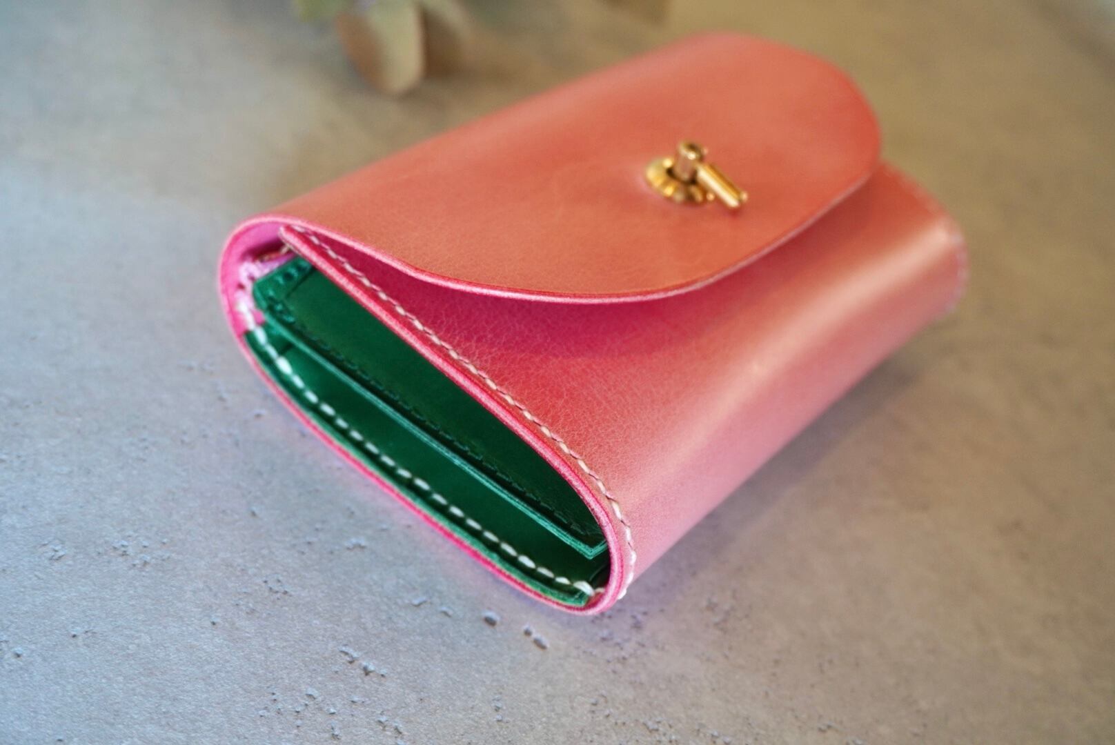 ☆ イタリアンレザーの華やかなピンクに同じくイタリアンレザーのグリーンをあわせた