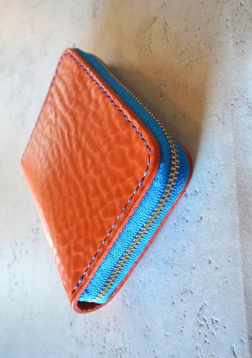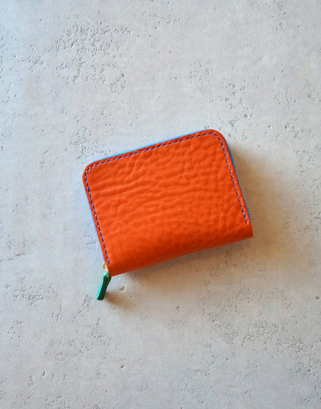 手のひらサイズラウンドファスナー財布 | オレンジレッド/イタリアンレザー|お札もカードもコインも一目で見える お札を折らずに入れられる