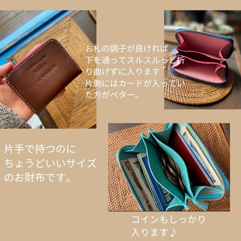 こちらのおサイフは通常よりも片側のマチを広く取ることで、より大きく開き