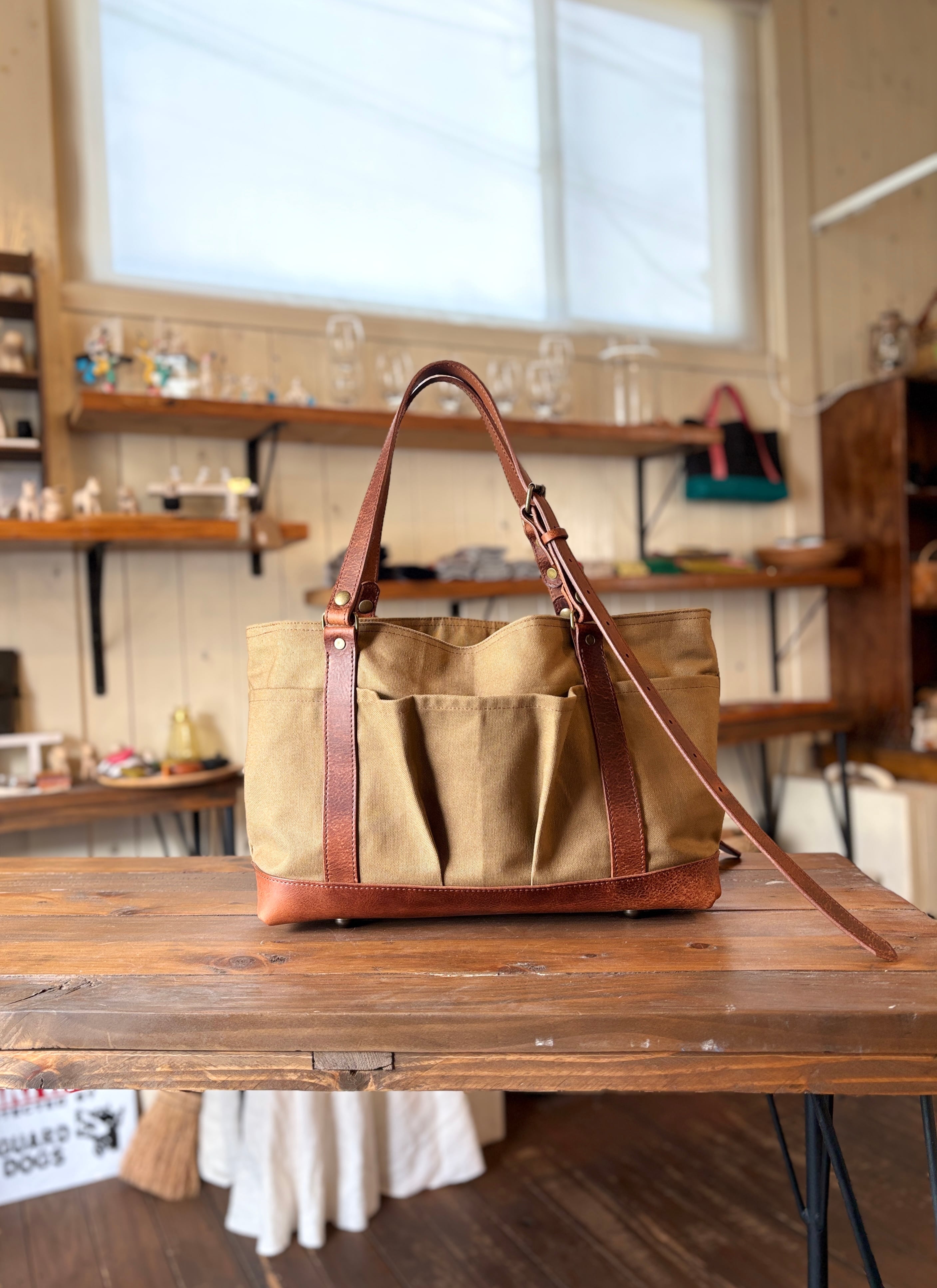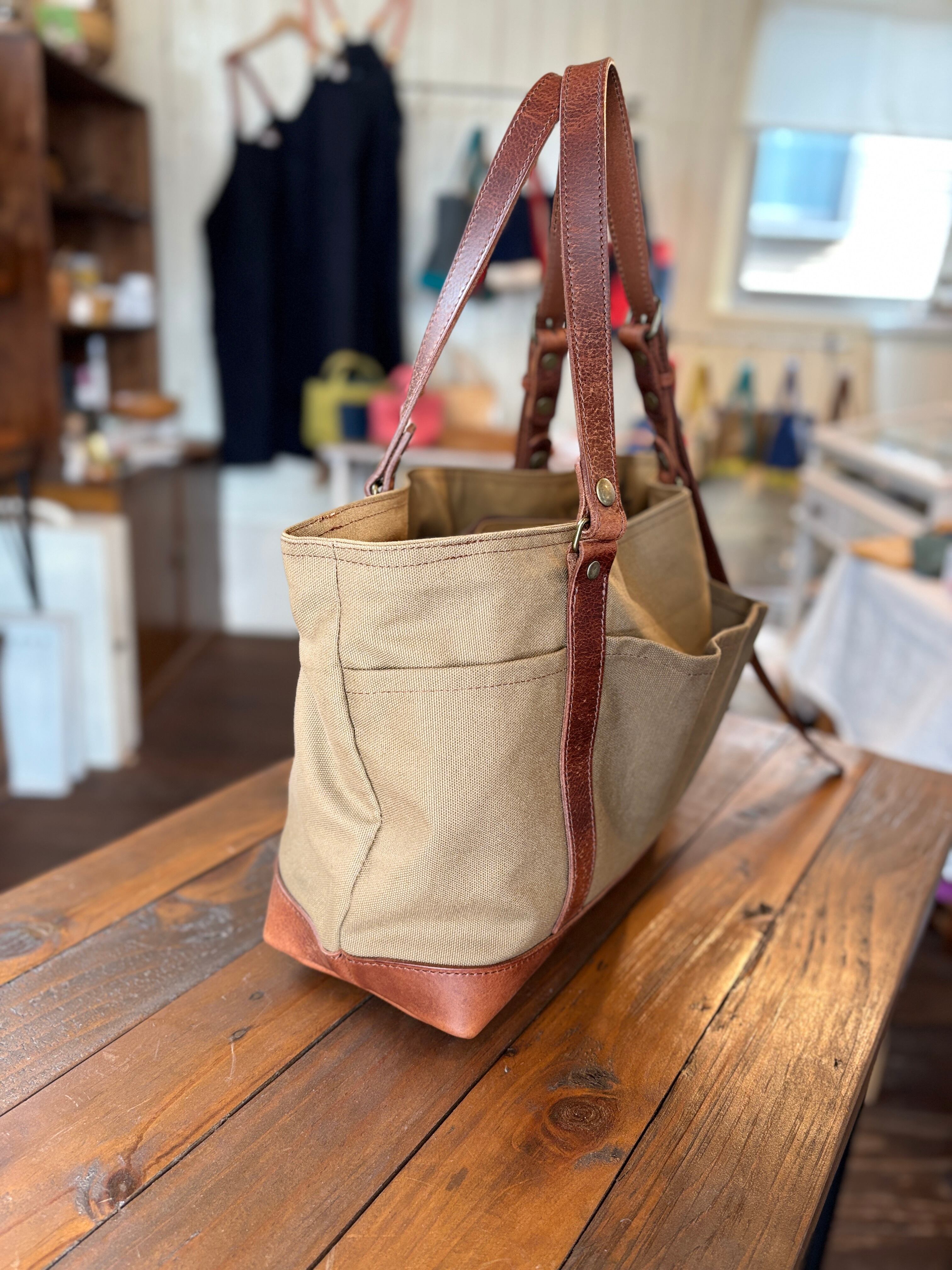 帆布×本革のトートバッグ ブラウン|上品&カジュアルに