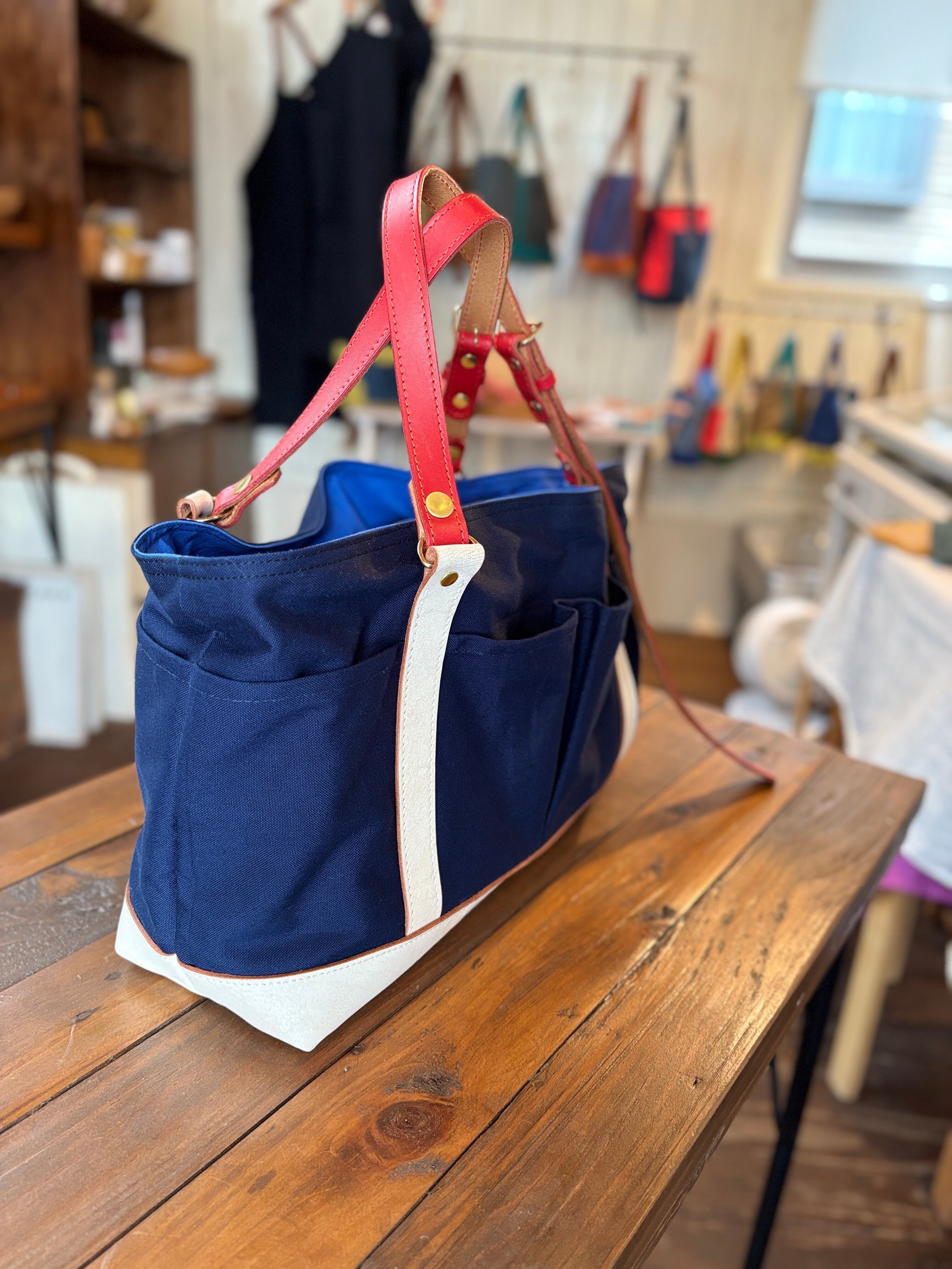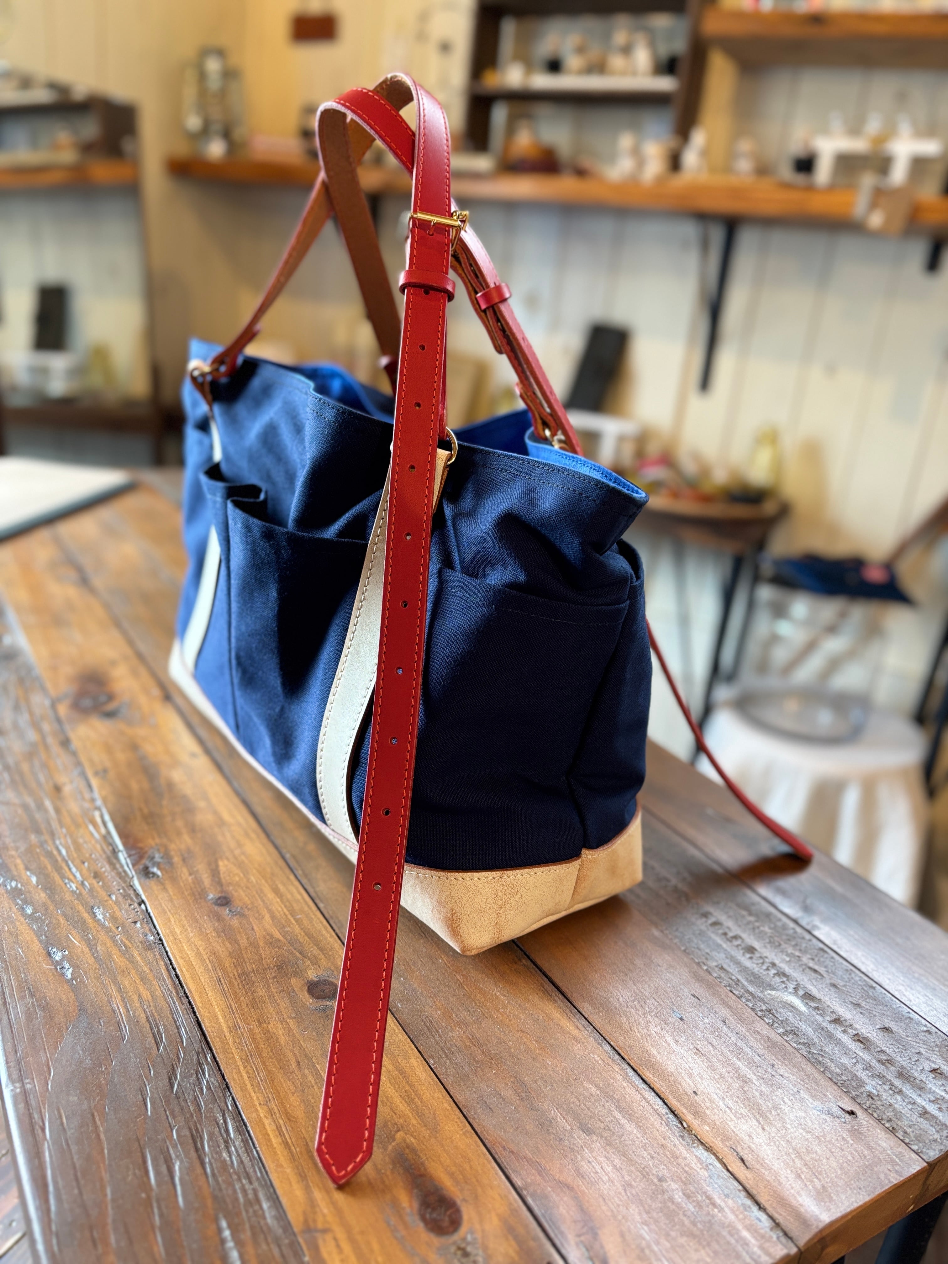 薄手帆布×本革のトートバッグ トリコロールカラー|上品&カジュアルに
