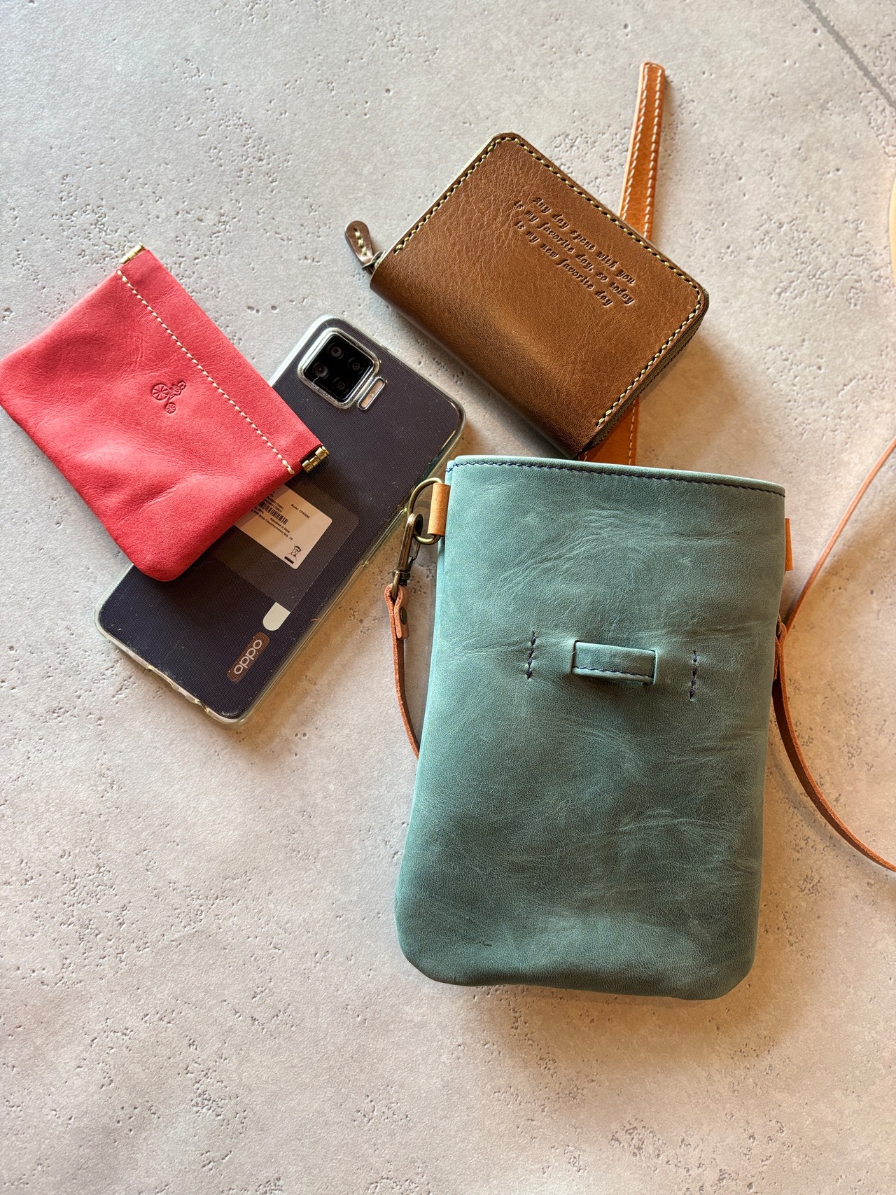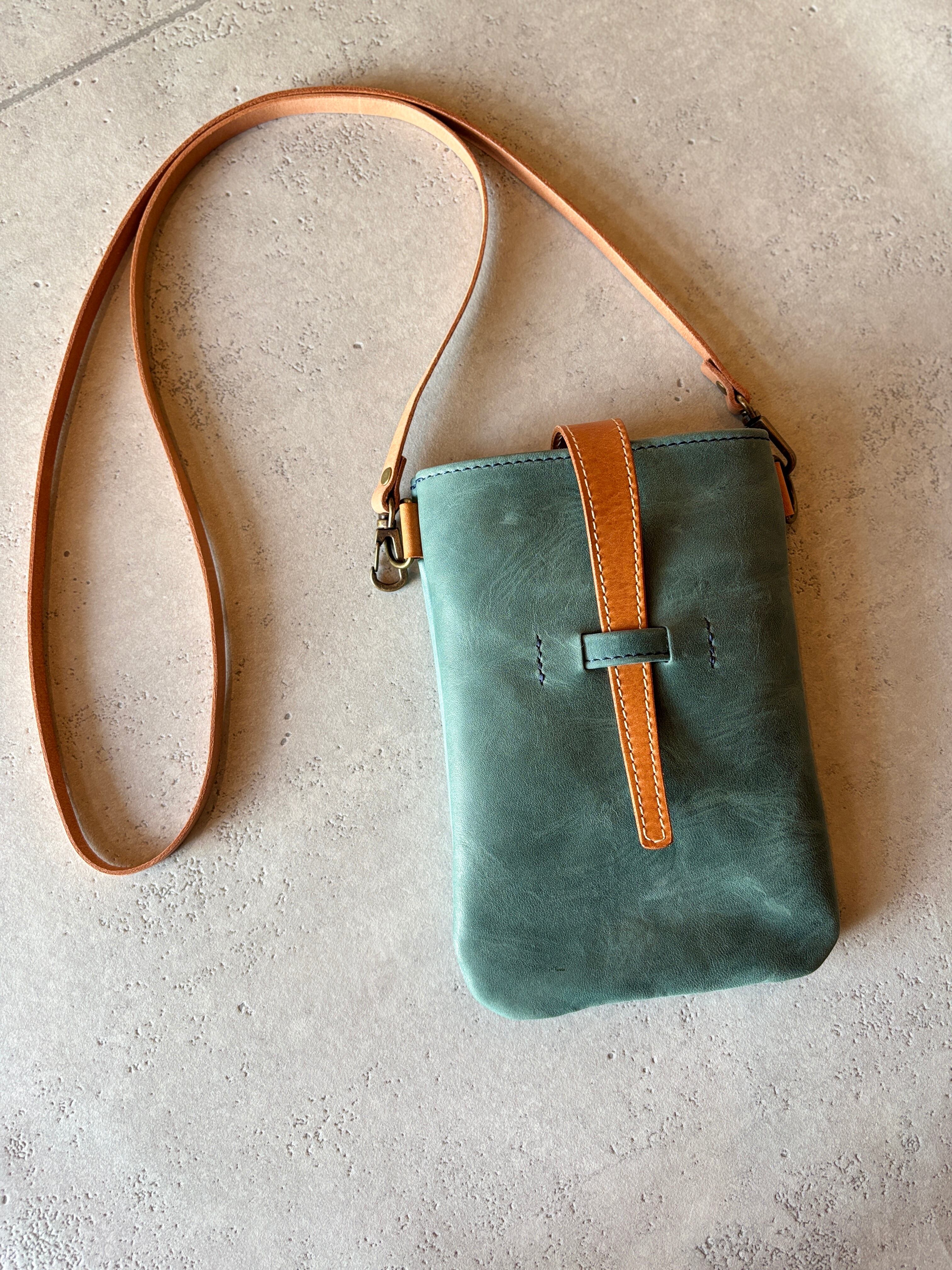 取り出しやすい本革スマホポシェット|プルアップホース×イタリアンレザー|お散歩・お出かけにぴったりなミニショルダーバッグ