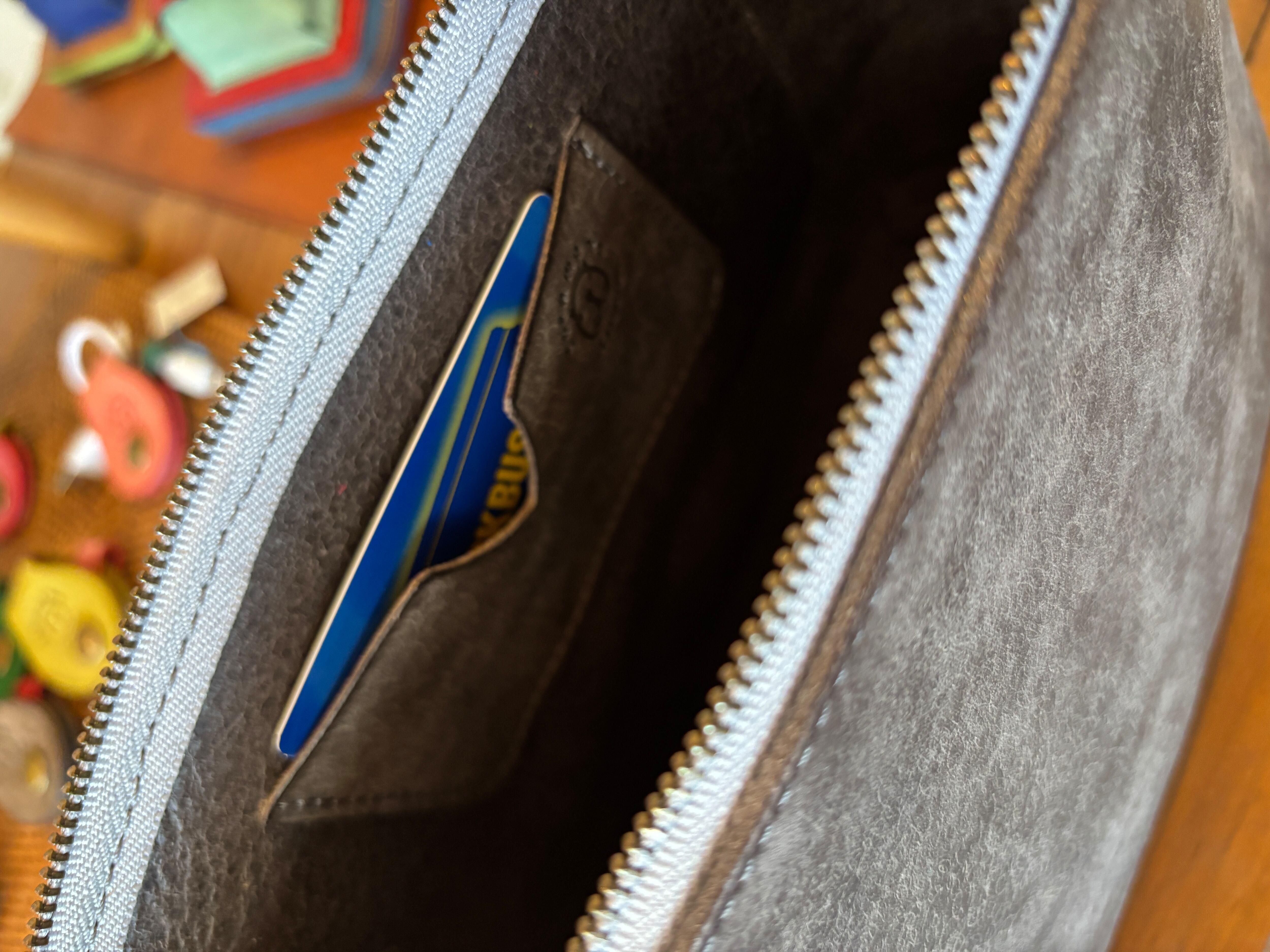バッグ内部にカードが入るサイズのポケットがひとつと(重ねて何枚か収納可)