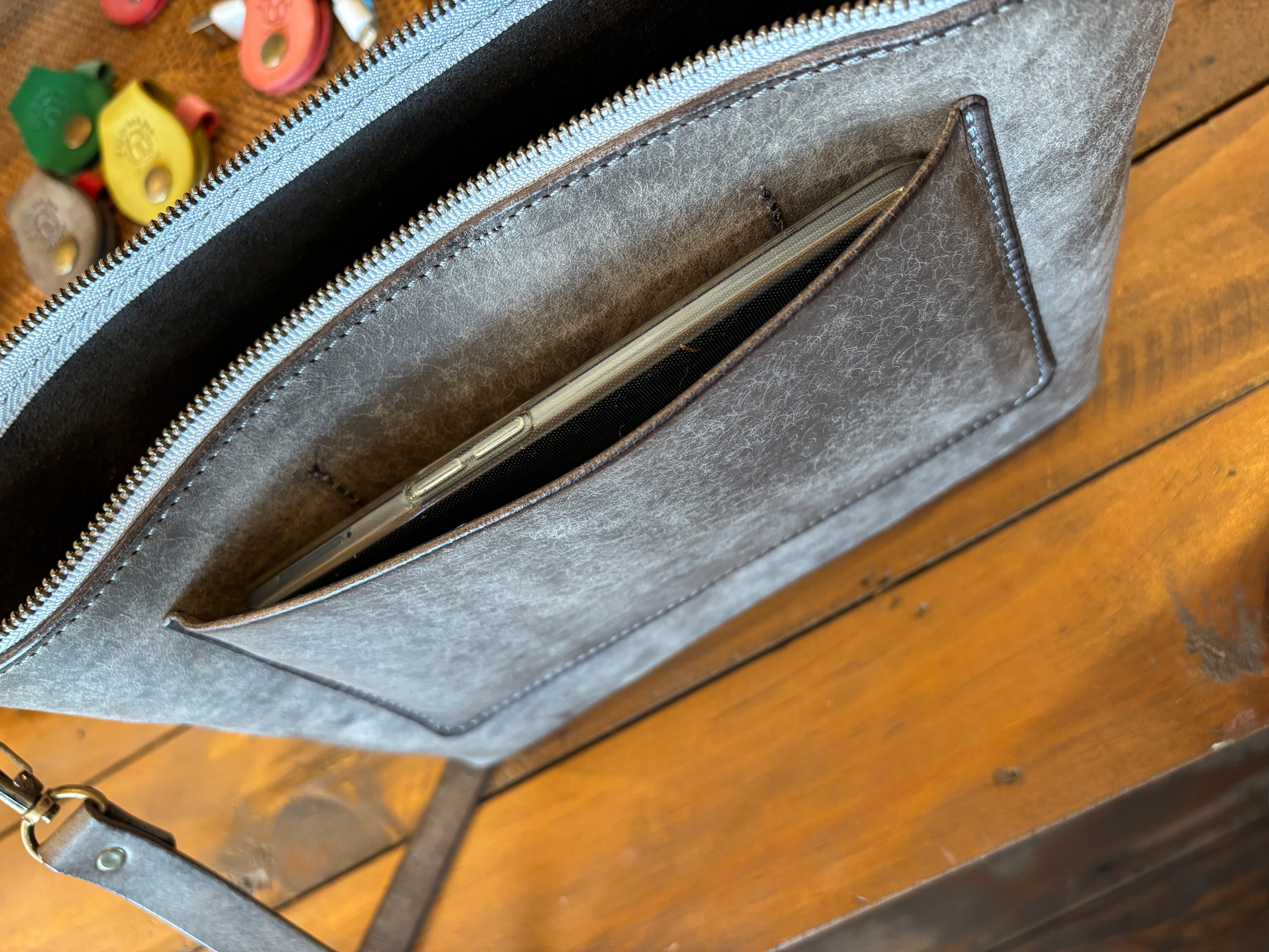 その反対側(バッグ内側のすぐ取り出せるところに)スマホ入れのポケットが1つついています。