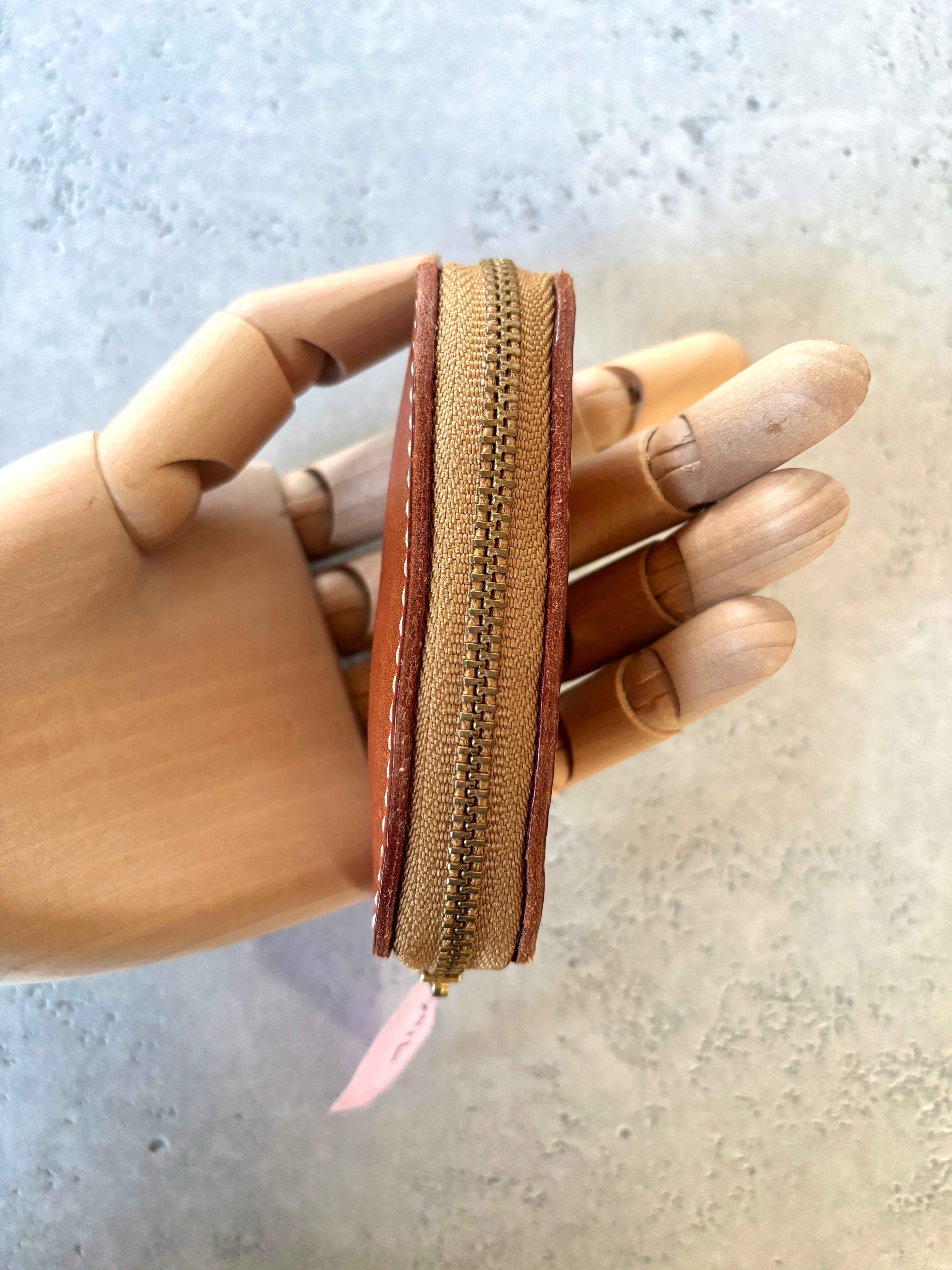 手のひらにすっぽり納まる、コンパクトなレザーコインケースです。