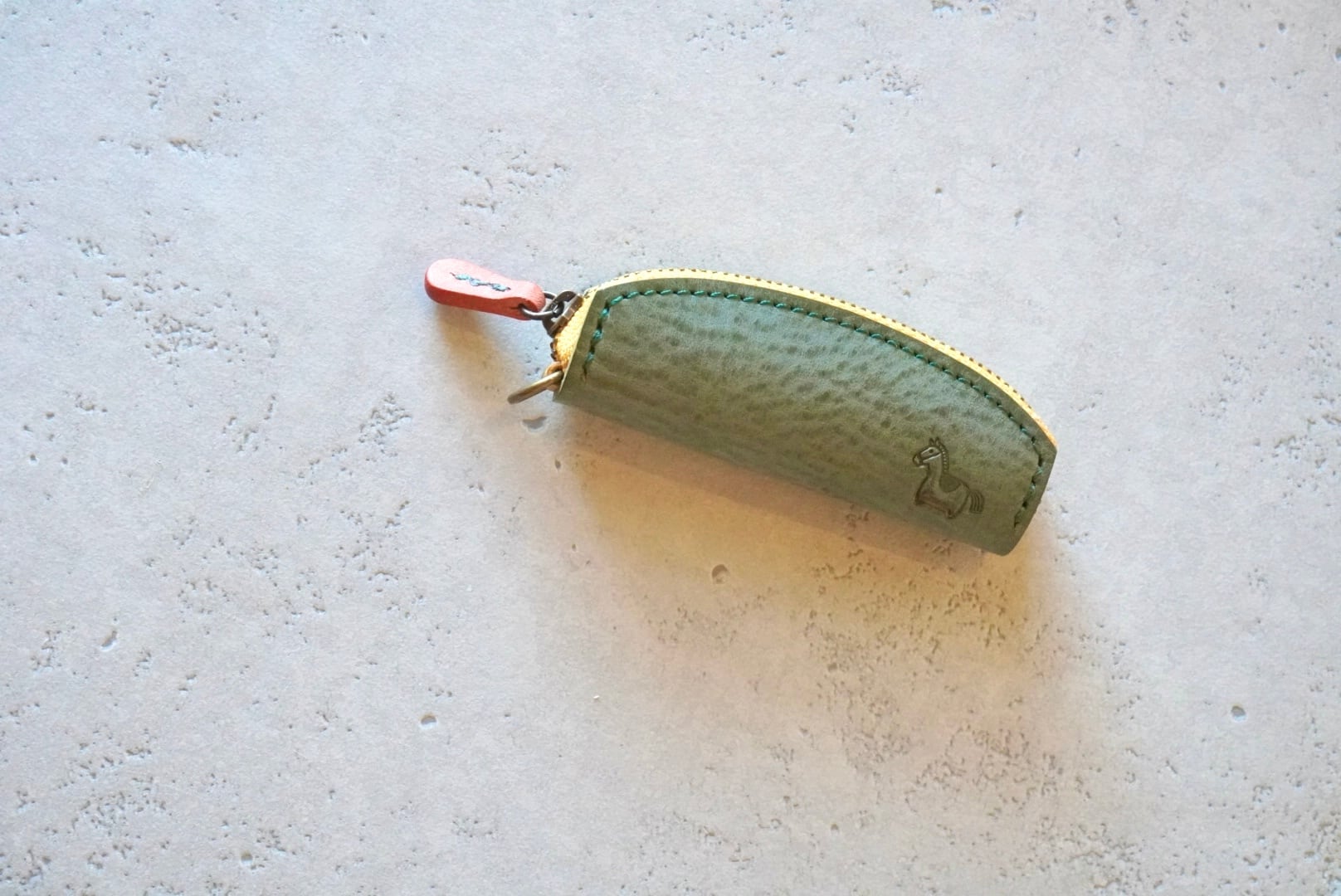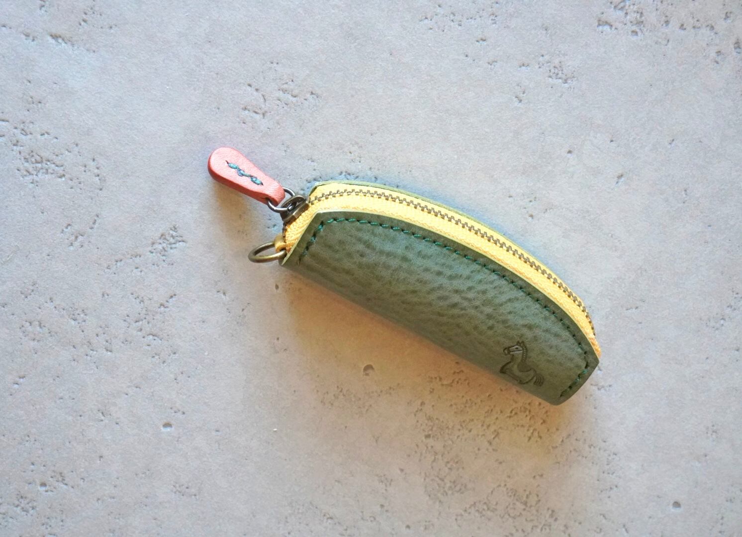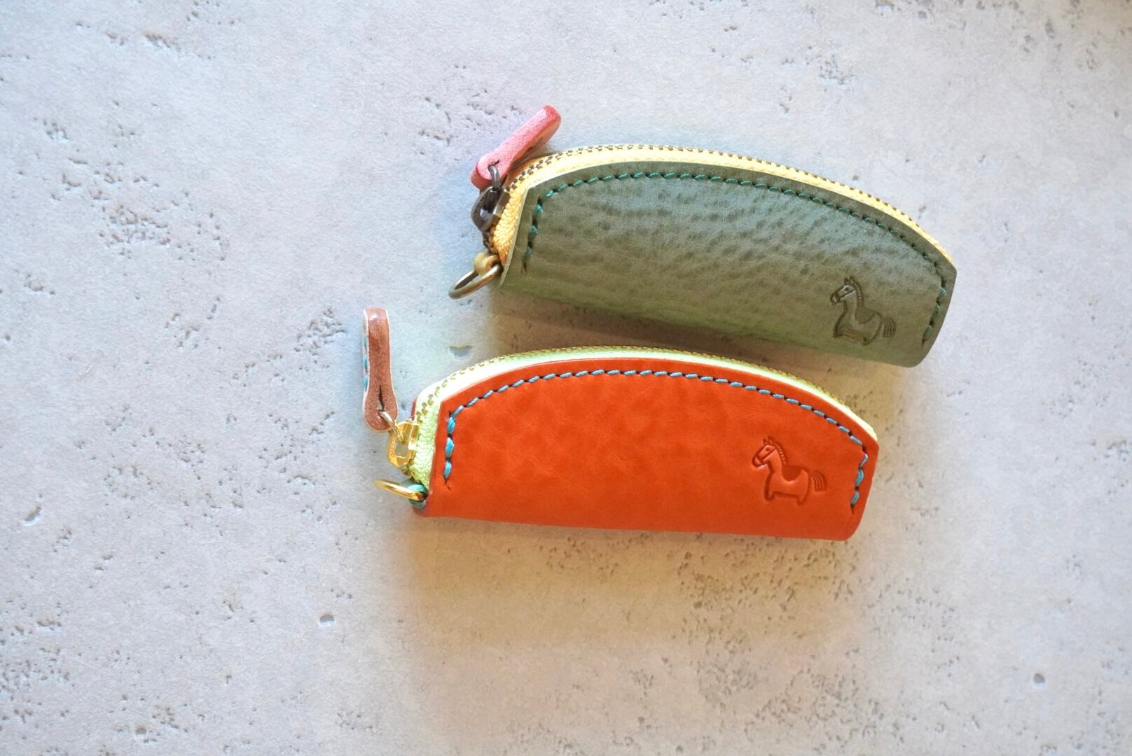 馬の刻印・手のひらサイズの本革コインケース グリーン|ぱっと開いてコインが一列に並んで見やすい!