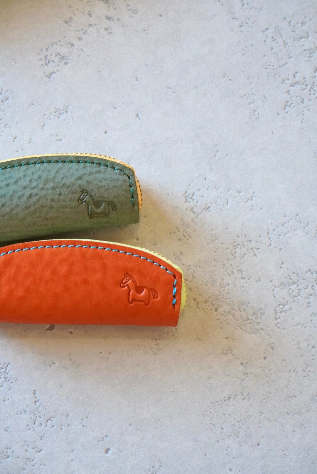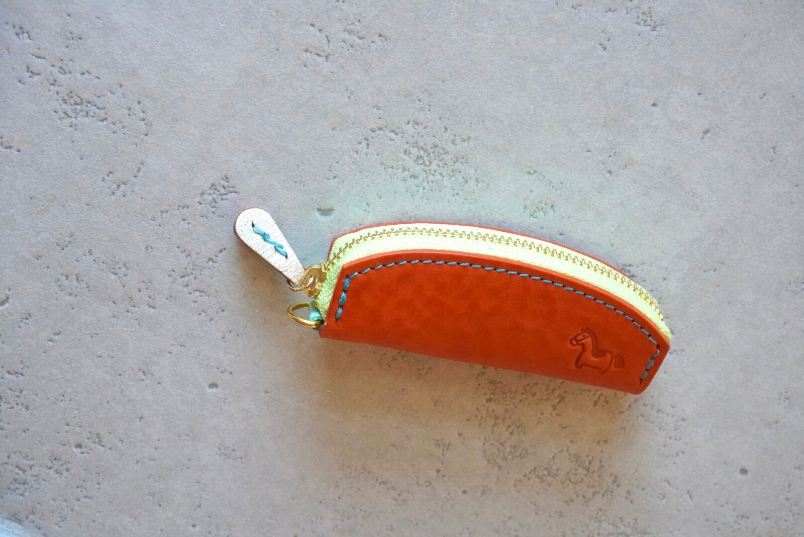 馬の刻印・手のひらサイズの本革コインケース オレンジ|ぱっと開いてコインが一列に並んで見やすい!