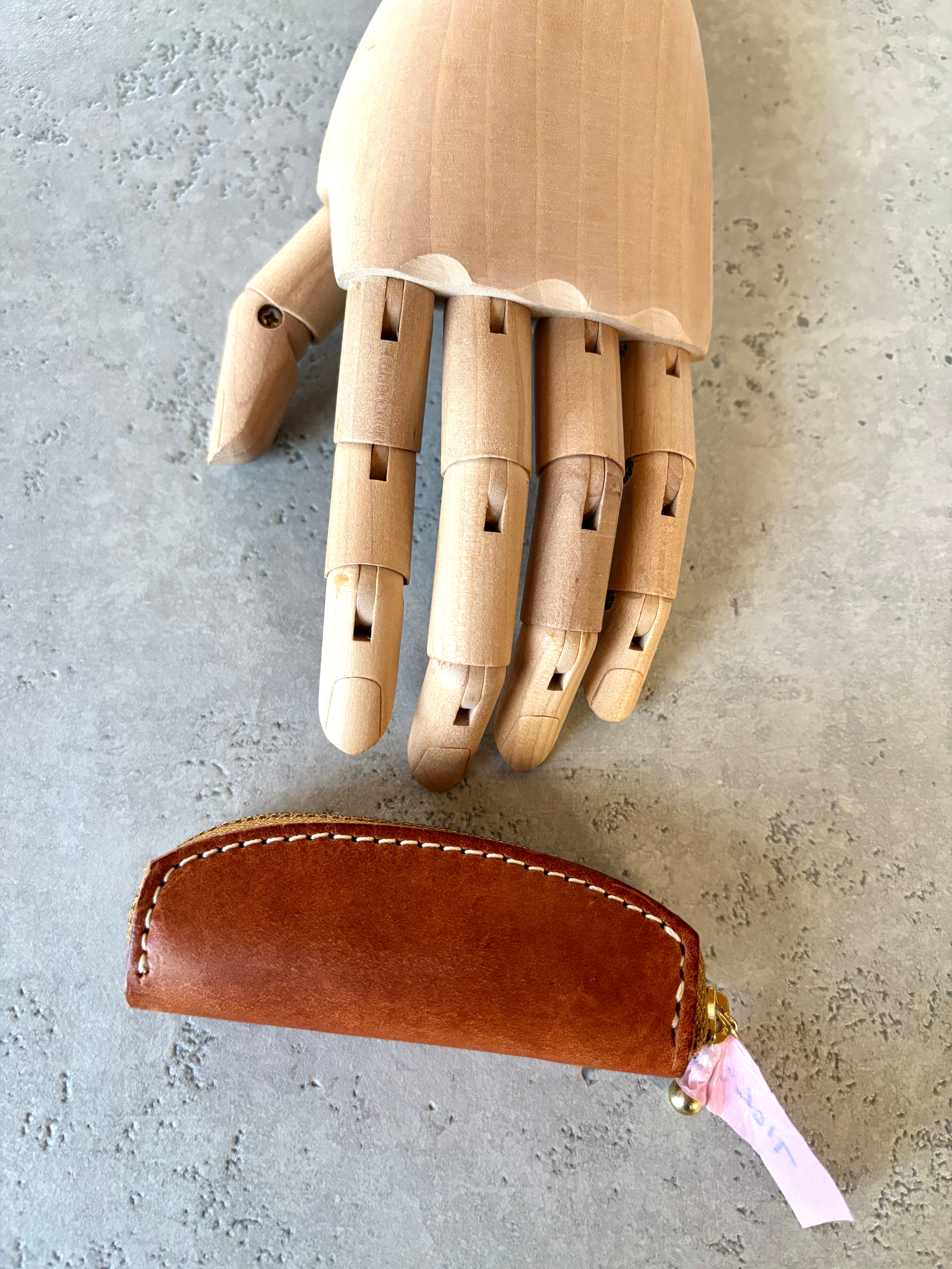 手のひらにすっぽり納まる、コンパクトなレザーコインケースです。