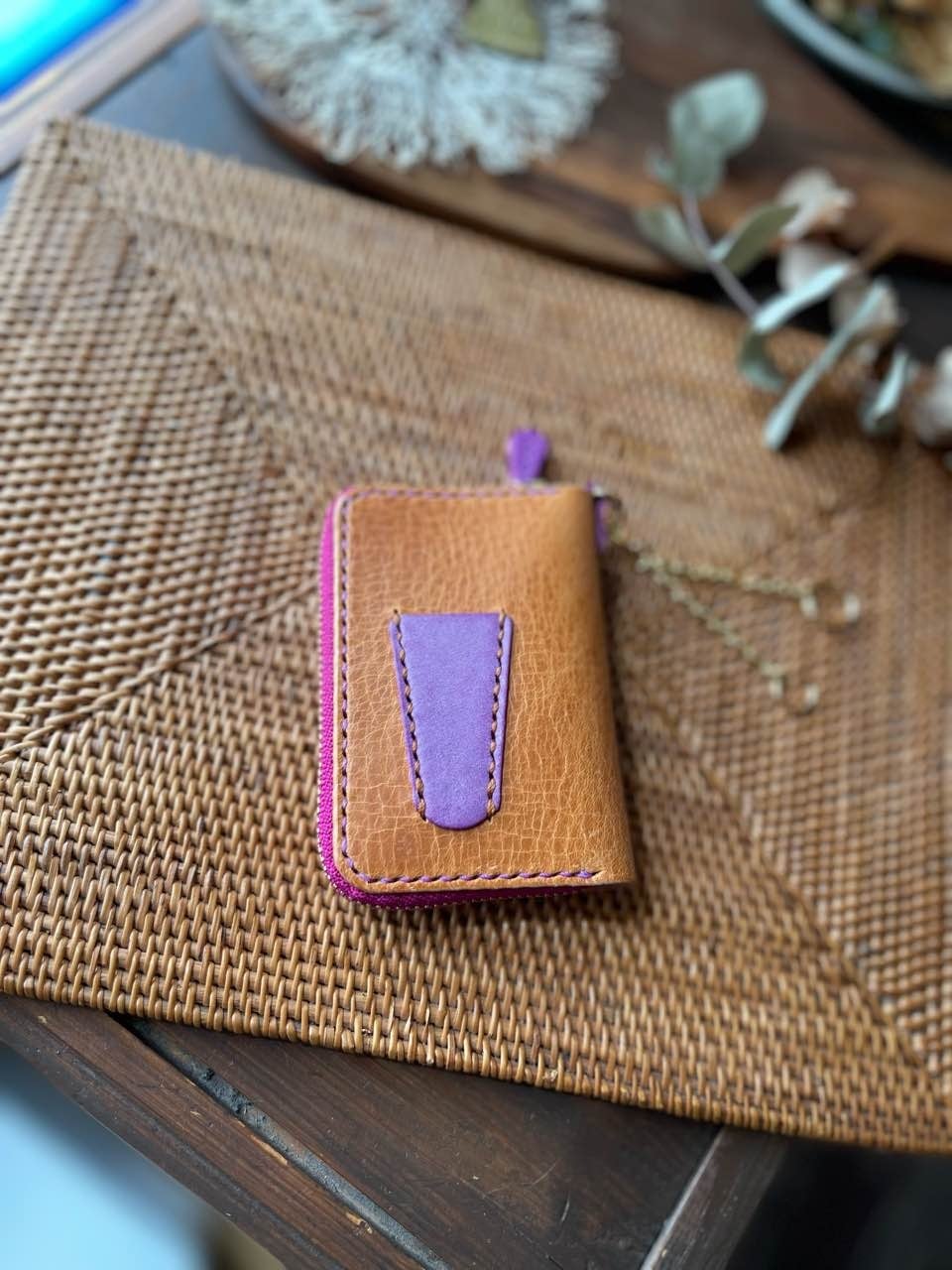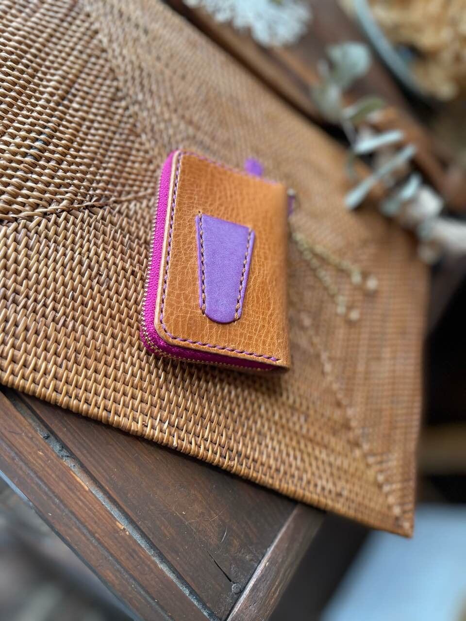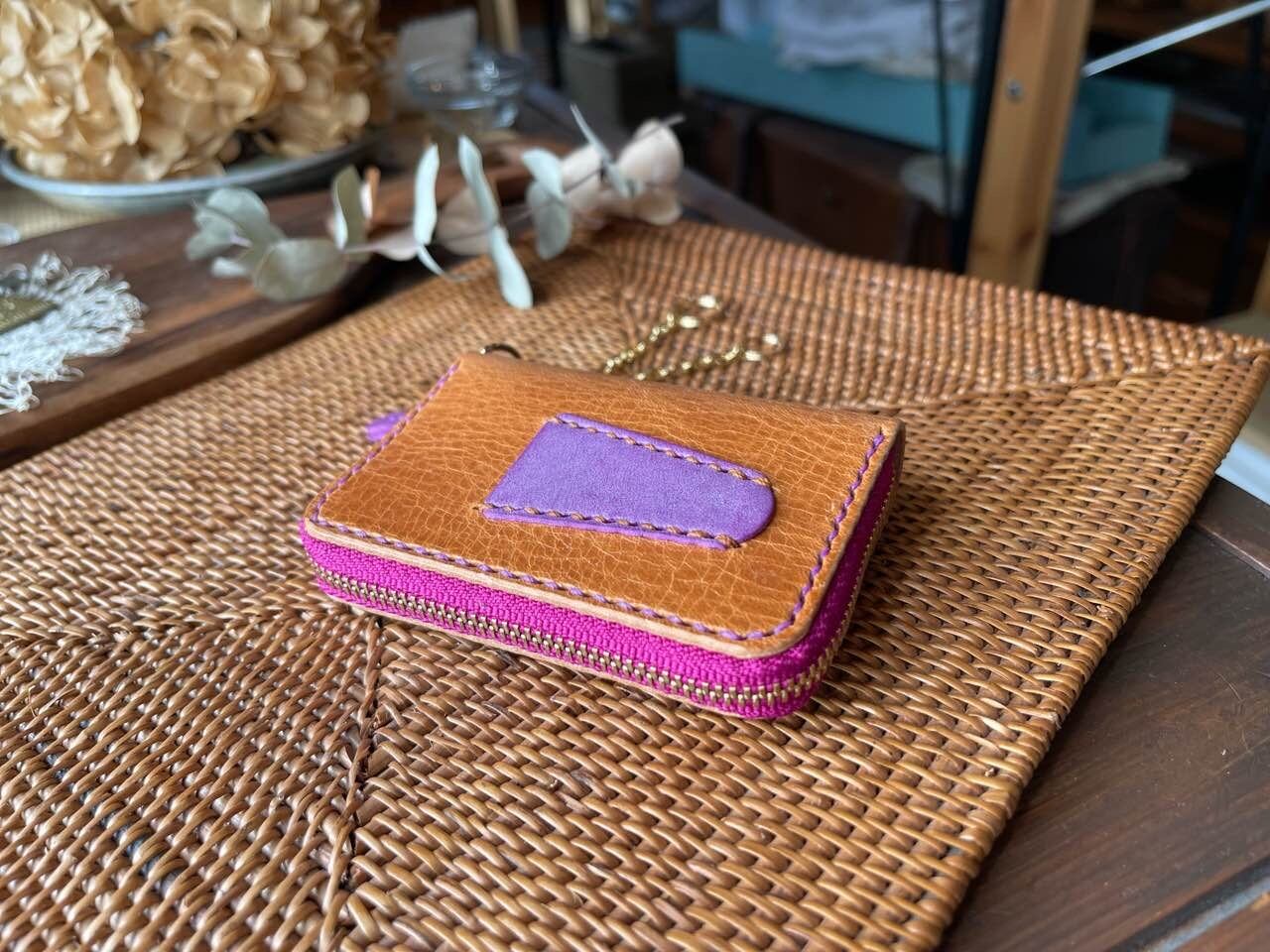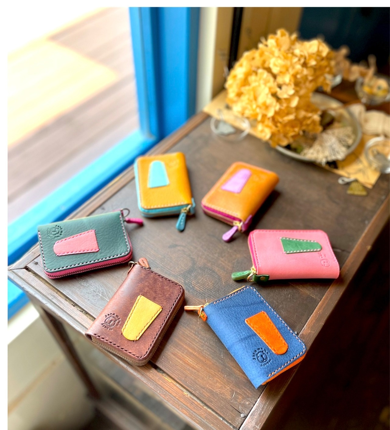 色んなイタリアンレザーを使用して、ラウンドファスナーでキーケースを作りました。