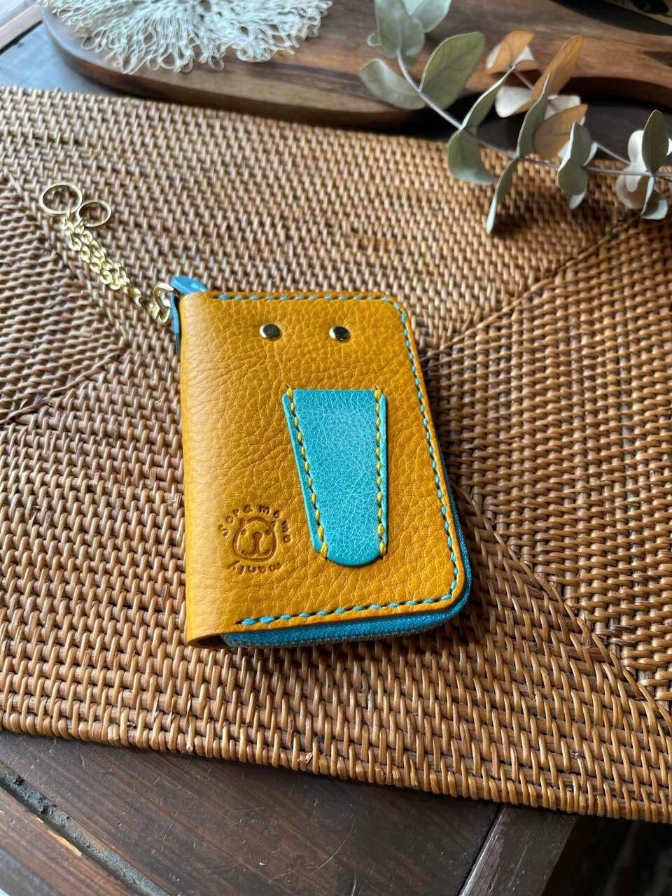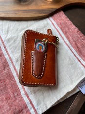 色んなイタリアンレザーを使用して、ラウンドファスナーでキーケースを作りました。