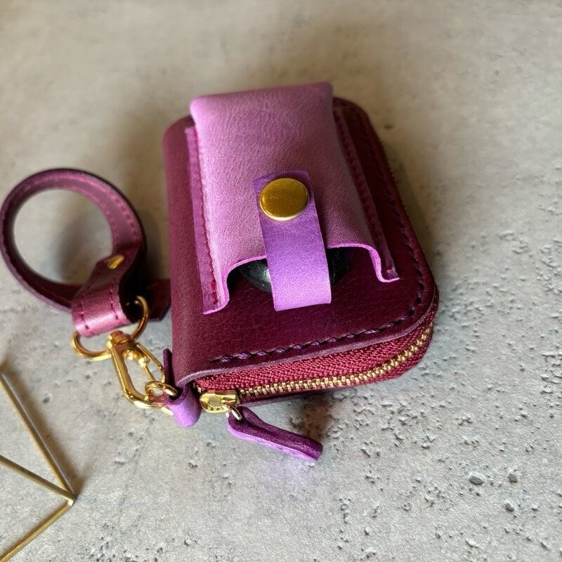 高品質なイタリアのレザーを使用し、さまざまなパープル色で可愛く機能的なラウンドファスナーのキーケースを作りました。